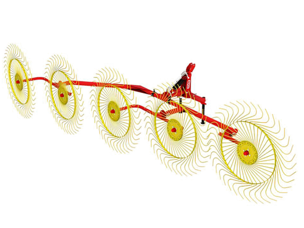 Конструкция граблей отличается прочностью и простотой в обслуживании, что делает их востребованными как в крупных хозяйствах, так и у фермеров с небольшими угодьями. Рабочие колеса граблей обладают оптимальной гибкостью, благодаря чему они аккуратно взаимодействуют с почвой, не повреждая корневой слой травостоя и не загрязняя кормовую массу землей.